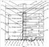 3. Стенке 2 придан уклон в сторону низовой части плотины, которую возводят из скального грунта. Это уменьшает активное давление 29 грунта на стенку 2, что повышает устойчивость стенки 2, в том числе и в ее верхней части.
