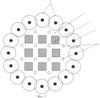 На фиг.2 показана схема расположения свай и инъекторов для подачи твердеющего раствора.