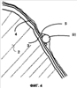 Фиг.2. Схематичное увеличенное изображение поперечного сечения угловой области при вершине центрального выступа, изображенного на фиг.1 (D), и прилегающего к этой угловой области участка наклонной стенки рельефа.