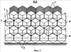 Многоярусный гараж включает поярусно установленные секции из боксов, выполненные из железобетонных полых правильных шестигранных призм 1, установленных на боковое ребро, при этом две боковые грани образуют параллельные вертикальные стенки бокса, снабженных полом 2, междуэтажные перекрытия проезжей части 3 и пандусы из плит 6 (см. фиг.1, 2, 3). Глухой торец призмы 7 представляет собой плоскую плиту в форме правильного шестигранника. На открытом торце бокса установлена система стоек 5 (см. фиг.1, 3), на которую устанавливается опорный конец плиты перекрытия проезжей части (разбивка на плиты не показана).