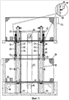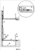 Два гидравлических цилиндра 20 с поршнями питаются от одного электро-гидравлического центра управления (на чертежах не показан). Он содержит клапан максимального давления, предназначенный для контроля перегрузки платформы, как при подъеме, так и при опускании. Датчик давления 25 показывает давление в системе в процессе работы. На основной стороне, расположенной ближе к колоннам, платформа снабжена вертикальным защитным элементом 38 в форме листа, закрывающего колонны, причем этот лист снабжен ячейкой, содержащей кнопочный узел 28, предназначенный для управления перемещением платформы во время технического обслуживания. В центре платформы имеется отверстие 32, в которое вставлена деревянная панель 34, несущая на своей нижней стороне устройство, воспринимающее присутствие транспортного средства и состоящее из магнитного датчика 35.