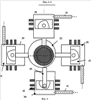 Двигатель Стирлинга 39 (фиг.1) состоит из двух частей: группы рабочих цилиндров 41 и группы расширительных цилиндров 42, которые соединены трубопроводами 43. Группу расширительных цилиндров 42 предпочтительно установить вне газового тракта ГТД 21.
