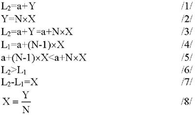 L1=a+(N-1)×X=2,4 м+(4 шт.-1)×0,4 м=2,4 м+1,2 м=3,6 м