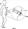 Печатная плата 140, на которой закреплен модуль 150 датчика, расположена и закреплена внутри кожуха 110 корпуса. Поэтому, когда пользователь закрепляет кожух 110 корпуса на теле, изгиб в направлении стрелки C1 по фиг.4B и фиг.4C образуется в балочной части 153 элемента 151 в форме пластины при движении тела. При изгибе балочной части 153 в пьезоэлектрическом элементе 156 возникает деформация, и электрический сигнал, соответствующий такой деформации, выводится из пьезоэлектрического элемента 156. Выходной электрический сигнал выводят в различные цепи, которые будут описаны ниже и которые используются для подсчета количества шагов.