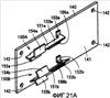 Как показано на фиг.21A-21C, печатная плата 140 изготовлена из элемента в форме пластины, имеющего, по существу, прямоугольную форму в виде в плане, и имеет структуру печатных цепей, сформированную на основной поверхности. Первый модуль 150A датчика и второй модуль 150B датчика соответственно включает в себя элемент 151a, 151b в форме пластины, имеющий консольную структуру, по существу, L-образной формы в виде в плане, и пьезоэлектрические элементы 156a, 156b, имеющие форму пластины, по существу, прямоугольной формы в виде в плане, закрепленные на элементах 151a, 151b в форме пластины.
