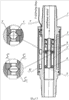 На чертежах (см. фиг.1 и 2) изображено устройство для реализации способа измерения характеристик жидких сред, а именно объемного расхода и вязкости (в варианте скважинного исполнения), которое содержит: проточный цилиндрический корпус 1 с измерительным, коаксиальным корпусу, кольцевым каналом 2, на входе которого установлен вращатель 3 потока кольцеобразной формы с радиальными, относительно измерительного канала, лопатками криволинейного профиля в сечении, шарообразное тело 4 качения из магнитного материала, размещенное в измерительном канале корпуса, канавку 5 во внешней стенке измерительного канала корпуса для обеспечения возможности движения размещенного в ней шарообразного тела 4 по штатной кольцевой траектории под воздействием вращающегося потока измеряемой среды, причем канавка 5 в измерительном канале корпуса выполнена с поверхностью S, для качения шарообразного тела 4, образованной дугой окружности с диаметром большим, чем диаметр шарообразного тела, узел 6 формирования и съема электрического сигнала, наземный блок (на рисунке не показан) для обеспечения электропитания и за работой и учета объемного расхода и вязкости, кабельную связь 7 наземного блока с узлом 6 формирования и съема информационного электрического сигнала. На определенном расстоянии, метрологически обоснованном (с точки зрения максимальной чувствительности измерения) от имеющейся канавки 5 с размещенным в ней шарообразным телом 4 качения, имеющей форму, образованную двумя конусными поверхностями S1 и S2, установлены вторые канавка 8 с шарообразным телом 9 качения и узел 10 формирования и съема информационного электрического сигнала, конструктивно выполненные аналогично первым. В нижней части скважинного прибора установлен дополнительный вращатель 11 потока (см. фиг.2).