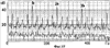 На фиг.8 приведен спектр огибающей вибрации задней коробки привода ЗКП, на котором проявляется бой ротора ВД, связанный с ухудшением взаимной центровки валов КВД и ТВД.