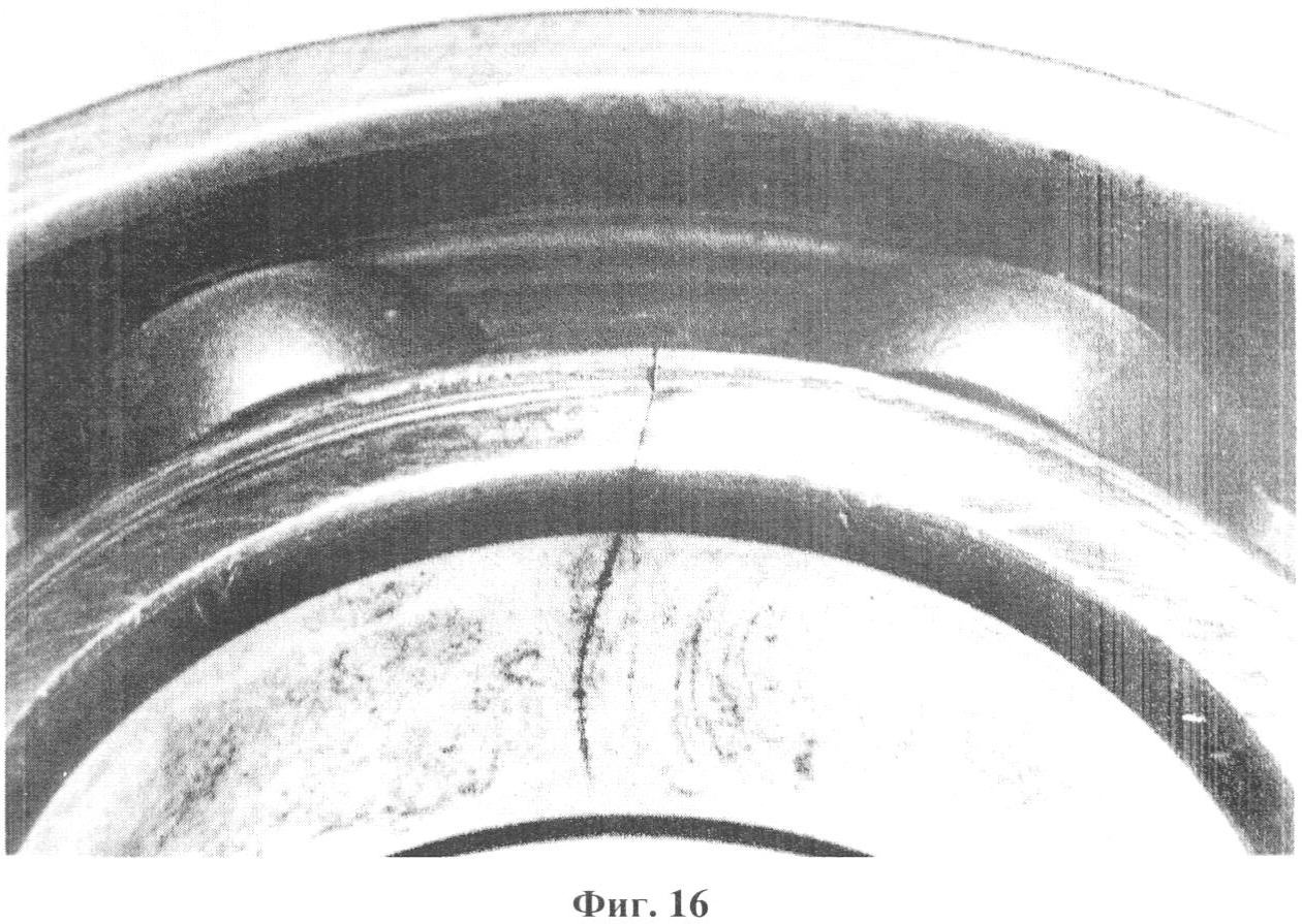 На фиг.16 приведена фотография дефектного подшипника с трещиной внутреннего кольца (после разборки дефектного узла).