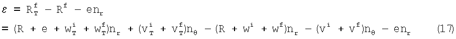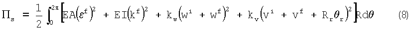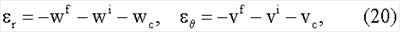 где: wf и vf обозначают соответственно, деформацию кольца вдоль радиального и тангенциального направлений в результате приложения пятна контакта. Поскольку пятно контакта движется, wf и vf представляют собой функции времени. Это состояние обозначается как состояние загрузки или конечное состояние.