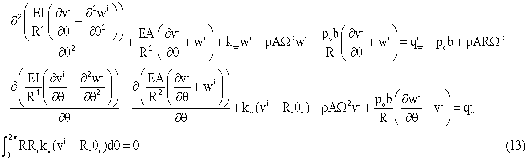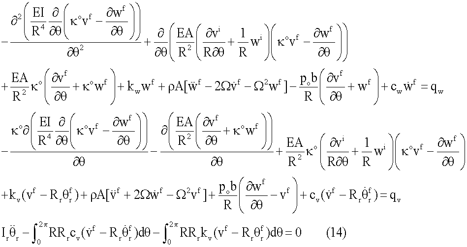 где: qw i и qv i соответственно представляют собой не изменяющиеся по времени внешние силы, действующие в радиальном и тангенциальном направлениях. В приведенном выше уравнении остаются только линейные коэффициенты.