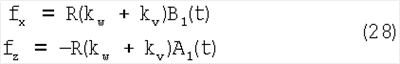 где: k и kr – соответственно тангенциальная и радиальная жесткость протектора, c и cr – соответственно тангенциальное и радиальное демпфирование протектора. Если демпфирование является пренебрежительно малым, приведенные выше уравнения можно упростить и представить в следующем виде