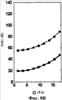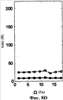 Если, однако, влияние РБ и вариации жесткости можно расположить таким образом, что они будут не в фазе, тогда силы неоднородности могут быть существенно снижены (или, другими словами, скомпенсированы). В качестве примера компенсации неоднородности на Фиг.8A и 8B представлена шина с теми же параметрами, которые указаны в Таблице, и которая имеет радиальное биение на первой гармонике (РБH1) 0,70 мм в положении 0 градусов, которое генерирует силы неоднородности. Как можно видеть на пунктирной кривой на Фиг.8А, на частоте около 17,5 Гц значение FxH1 (вариация тангенциальной силы для первой гармоники) очень велико. Если вариация радиальной жесткости на первой гармонике с величиной около 4,0% будет расположена под углом 180 градусов и если рассчитать силы, действующие на ось, то значение FxH1 будет снижено, как показано сплошной линией на Фиг.8A. Это указывает, что значение Fx может быть минимизировано при относительно высоких скоростях благодаря компенсации РБ и вариации жесткости. Значение Fz также может быть улучшено аналогичным образом как для низкой, так и для высокой скоростей, как показано на Фиг.8B.