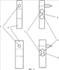 Сущность заявляемого устройства для испытания материалов на трение и износ поясняется примерами его реализации и чертежами. На фиг.1 показано схематично в разрезе устройство для испытания материалов на трение и износ в наиболее общем виде; на фиг.2 показаны варианты реализации тензометрических балок, в каждой из которых выполнены по два сквозных отверстия, соединенных сквозной прорезью, при этом оси отверстий выполнены перпендикулярно оси инденторов; на фиг.3 представлена схема взаимодействия инденторов с поверхностью дисков за счет выполнения в тензометрических балках по два сквозных отверстия, соединенных сквозной прорезью; на фиг.4 схематично показан вариант реализации тензометрических балок в виде моноблока, состоящего из двух пар плоскопараллельных пружин, соединенных с обоих концов между собой попарно перемычками и повернутых относительно друг друга на 90° вдоль их оси, параллельной плоскости пружин, с соединением в единое целое по одной из перемычек, принадлежащей каждой из пар пружин (показаны каждая из двух пар пружин в двух проекциях «а» и «б» и их соединение между собой в двух проекциях – «в» и «г»); на фиг.5 схематично показан вариант реализации тензометрических балок в виде моноблока, состоящего из двух пар плоскопараллельных пружин, соединенных между собой попарно перемычками с обоих концов и повернутых относительно друг друга на 90° вдоль их оси, параллельной плоскости пружин, с соединением в единое целое по внутренним сторонам перемычек (показаны каждая из двух пар пружин в двух проекциях и их соединение между собой в двух проекциях), на фиг.6 дано аксонометрическое изображение реальной балки, варианта реализации, представленного на фиг.5; на фиг.7 показано расположение выреза в диске; на фиг.8 показано выполнение периферийных частей плоскостей дисков, обращенных к ротору, утолщенными, на фиг.9 показаны варианты реализации индентора в соответствии с п.16 и 17 формулы изобретения; на фиг.10 показано схематично в разрезе устройство для испытания материалов на трение и износ, снабженное стягивающими балки пружинами.