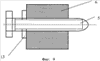 Диски 4 в периферийных частях плоскостей, обращенных к ротору, выполнены утолщенными и установлены в роторе 3 с их базированием по плоскостям утолщений и цилиндрическими образующими (см. фиг.8). Для обеспечения возможности регулирования нормальной силы индентор 5 закрепляется в тензометрической балке 6 с возможностью смещения вдоль его продольной оси. Выполнение механизма смещения индентора в виде нанесенной на нем и в тензометрической балке винтовой резьбы и снабжение индентора средством его законтривания 13, например, в виде гайки обеспечивает наиболее простым образом установку точного значения нормальной нагрузки (см. фиг.9). Балки 6 попарно между собой соединены стягивающей их пружиной 14.