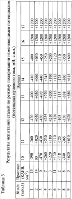 Изобретение относится к области оценки коррозионной стойкости сталей и изделий из них, предназначенных для эксплуатации в агрессивных средах. Способ состоит в том, что от изделий отбирают образцы. Затем изготавливают из них шлифы с полированной поверхностью, размещают шлифы в коррозионной среде. Коррозионная среда содержит ионы хлора или ионы роданида. Дополнительно коррозионная среда содержит тетраборат натрия и борную кислоту. При этом поляризуют постоянным потенциалом в области от -500 до +500 мВ (с.в.э.) и определяют установившееся значение плотности тока поляризации. Также поляризуют потенциалом, изменяющимся со скоростью 0,2-12 В/ч в области от -0,5 до +1,2 В (с.в.э.) и без прерывания поляризации от +1200 мВ до -500 мВ (с.в.э.). Определяют значение потенциала, при котором достигается нулевое или отрицательное значение тока. По трем измеренным значениям тока судят о коррозионной стойкости сталей и изделий из них. Технический результат заключается в повышении информативности и достоверности контроля качества стальных изделий. 1 з.п. ф-лы, 3 табл.