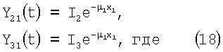 Y21(t), Y31(t) – текущие значения плотности потока фотонов на входах вторых и третьих детекторов 12 и 13 соответственно, при наличии в корпусе 1 однокомпонентной контролируемой среды;