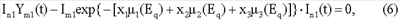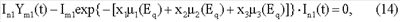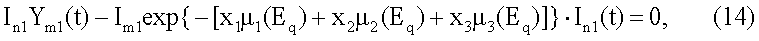 Im1(t) – текущее значение плотности потока фотонов на входе детектора с порядковым номером m, входящего в состав первого многоканального детектора 11, при напряжении U1 питания рентгеновской трубки 5 и при отсутствии в корпусе 1 контролируемой среды;