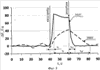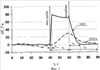 Фиг.1 – Выходные кривые пьезосенсоров с сорбционным покрытием из углеродных нанотрубок (УНТ) и с покрытием из полиэтиленгликольадипината (ПЭГА) при детектировании толуола: