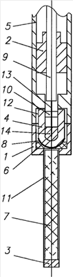 Пробка 10 предназначена для фиксирования эталонного электрода 14 во внутренней полости керамического чувствительного элемента 4.