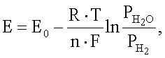 Результирующая ЭДС является функцией давления водорода и записывается следующим образом: