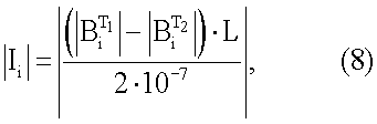 где , – мгновенные значения магнитного поля, Тл в моменты времени t1 и t2 соответственно; L – расстояние от датчика катодного тока до оси трубопровода, м.