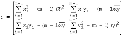 – ковариационная матрица распределения координат точек локализации в первичном кластере; m – число сигналов в кластере; f – верхняя 100(1- ) – процентная точка распределения Стьюдента F2,m-3 с (m-3) степенями свободы.