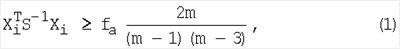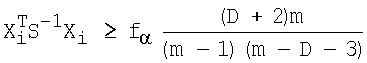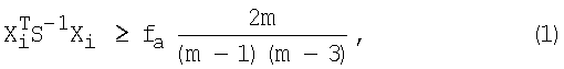 – средние значения координат точек локализации без учета проверяемой точки. Затем следующее неравенство (1) проверяется до первого случая его невыполнения (Пугачев B.C. Теория вероятностей и математическая статистика. – М.: Физматлит, 2002, С.280, С.274-275).