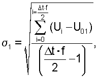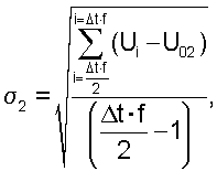 Значение порога селекции должно быть на 1% выше вычисленного значения Um. Для исключения дискретного сигнала в результатах измерения интервал измерения разбивается по времени на две равные части. При этом для каждой части рассчитывается значение среднего квадратического отклонения как: