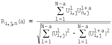 где Ul i,j – оцифрованное значение i -го сигнала акустической эмиссии, зарегистрированного акустическим преобразователем j в момент времени l; N – количество отсчетов при оцифровке; а – аргумент корреляционной функции.