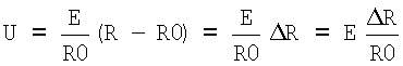 где E – напряжение источников опорного напряжения, R – сопротивление тензорезистора, R0 – сопротивление опорного резистора (номинальное сопротивление тензорезистора), R – полезное (преобразуемое) приращение тензорезистора.