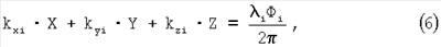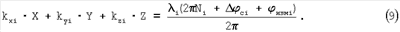 X, Y, Z – неизвестные значения относительных координат фазового центра второй антенны относительно первой.