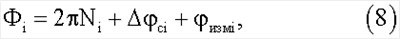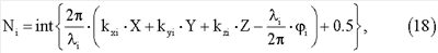 Ni – число целых циклов неоднозначности 360° в ФС сигнала i-го KA;