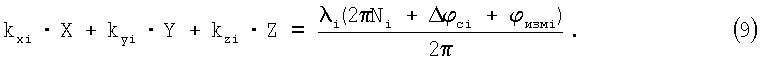 i – измеренное и скорректированное с учетом систематической погрешности значение фазового сдвига сигнала i-го космического аппарата;