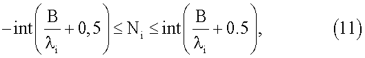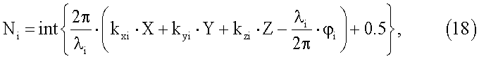 Ni – значение целочисленной неоднозначности сигнала i-го космического аппарата, удовлетворяющее условию: |Ni| int(B/ +0.5);