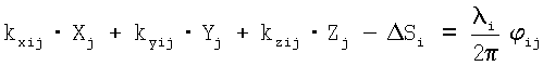 ij – измеренные значения фазовых сдвигов сигналов i-го КА, принятых антеннами потребителя в j-m измерении;