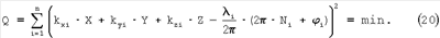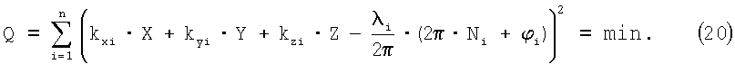Таким образом, для определения угловой ориентации требуется многократное решение системы уравнений (10) при заданных в каждом случае значениях вектора неоднозначностей NN=(N1, N2, , Nn)T, в котором каждый из элементов Ni вектора NN определяется в соответствии с условием (11).