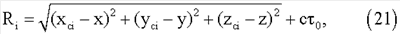 xci, усi, zci – координаты i-го КА в геоцентрической системе координат, вычисленные на момент проведения измерений путем решения задачи размножения эфемерид;