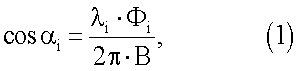 Фазовый сдвиг (ФС) сигнала i-го КА, принимаемого двумя пространственно разнесенными антеннами, и косинус угла между вектором-базой и вектором-направлением на i-й КА i связаны между собой выражением: