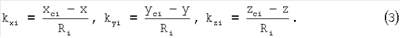 kxij, kyij, kzij – направляющие косинусы направлений потребитель – i-й космический аппарат (КА);