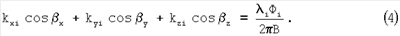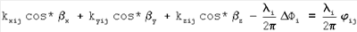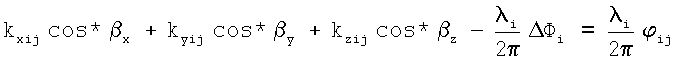 cos* xyz=B·cos xyz – произведение неизвестной базы В (расстояния между антенно-приемными устройствами) на ее направляющие косинусы cos xyz, подлежащие определению;