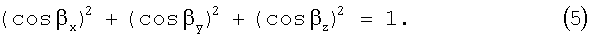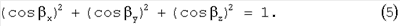 Вычисление направляющих косинусов вектора-базы осуществляют на основе уравнения, полученного исходя из свойства скалярного произведения векторов в декартовой системе координат:
