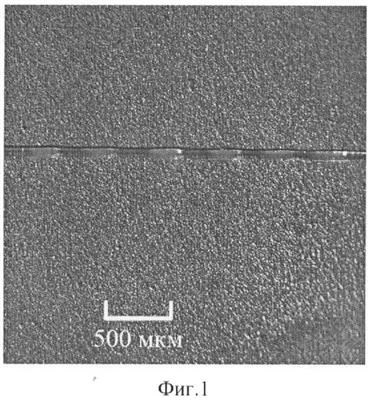 Волокно из силикатного стекла диаметром 50 мкм вертикально погружают в 30% раствор нитроцеллюлозы в этилацетате, затем вертикально извлекают волокно из раствора, после чего волокно высушивают при комнатной температуре в течение 3-4 часов. На фиг.2 показан участок волокна с гофром, сформировавшимся из высыхающих капель полимера. Видно, что период гофра составляет 200 мкм, модуляция толщины гофра 10 мкм.