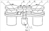 – два основных промежуточных зубчатых колеса, которые имеют одинаковые диаметр и число зубьев и связывают упомянутое центральное зубчатое колесо с упомянутыми зубчатыми колесами основных трубок панкратических блоков, при этом каждое промежуточное зубчатое колесо закреплено на одной из половинок корпуса с возможностью вращения (US 4396257 от 23.09.1981).