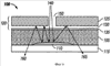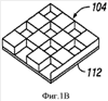 Различные примеры интерферометрических модуляторов описаны в патентной публикации US 2002/0126364 A1. Фиг.1 и 2 иллюстрируют некоторые характеристики типового интерферометрического модулятора (см. фиг.1 и 2 патентной публикации US 2002/0126364 A1 и соответствующий текст). Ссылаясь на фиг.1А и 1В, каждая из двух структур 114 и 116 интерферометрических модуляторов включает в себя вторичное зеркало 102 с рифленым узором 104, вытравленным в его верхней (внешней) поверхности 103 с использованием любого из множества известных методов. Рифление не проходит через мембрану 106, на которой образовано зеркало, так что внутренняя поверхность 108 зеркала остается гладкой. На фиг.1В показан узор вытравленного рифления 104 на вторичном зеркале и гладкая внутренняя поверхность 112, которая остается после травления. Рифленый узор, который может быть сформирован с различной геометрией (например, прямоугольным, пирамидальным, коническим), обеспечивает структурное упрочнение зеркала, делая его более устойчивым к вариациям в деформациях материала, снижение полной массы и препятствует деформации, когда зеркало приводится в действие.