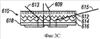 В другом примере пассивной оптической компенсационной структуры, показанной на фиг.3С, трехслойная полимерная пленка 610 содержит взвешенные частицы. Частицы в действительности представляют собой многослойные диэлектрические зеркала, которые изготовлены в форме микроскопических пластинок. Эти пластинки, например, могут быть изготовлены путем нанесения многослойных диэлектрических пленок на полимерный слой, который при растворении оставляет пленку, которая может осаждаться таким образом, чтобы формировать пластинки. Пластинки затем подмешиваются в материал-предшественник в виде жидкого пластика. За счет приложения электрических полей в течение процесса высушивания ориентация этих пластинок может быть фиксированной в процессе производства. Зеркала могут проектироваться таким образом, чтобы они отражали только в диапазоне углов скольжения. Следовательно, свет либо отражается, либо пропускается в зависимости от угла падения по отношению к зеркалу. На фиг.3С слой 612 ориентирован для отражения света 609 с высоким значением угла падения, входящего в пленку 610 с направлений, близких к перпендикуляру. Слой 614 отражает свет 613 с более низким значением угла падения в более перпендикулярную траекторию. Слой 616 модифицирует свет 615, падающий под еще более низким углом падения. Поскольку слои в минимальной степени влияют на свет, который падает почти перпендикулярно, то каждый из них действует как отдельный «фильтр, селективный по углу падения», результатом которого является то, что случайным образом ориентированный падающий свет проходит в подложку с более высокой степенью перпендикулярности. Это минимизирует сдвиг цвета в изображении, наблюдаемом через эту пленку.