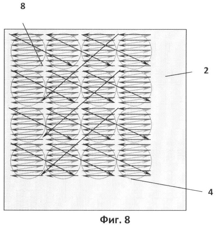 На Фиг.7 показана схема, иллюстрирующая «обход» управляемых элементов внешней матрицы и формирование многоракурсного изображения на внутренней матрице.