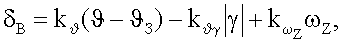 B – угол отклонения руля высоты.