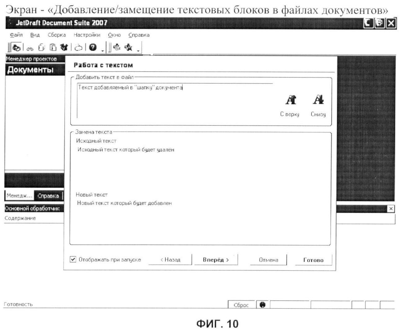 фиг.10 – вариант выполнения пользовательского интерфейса «Добавление/замещение текстовых блоков в файлах документов»;