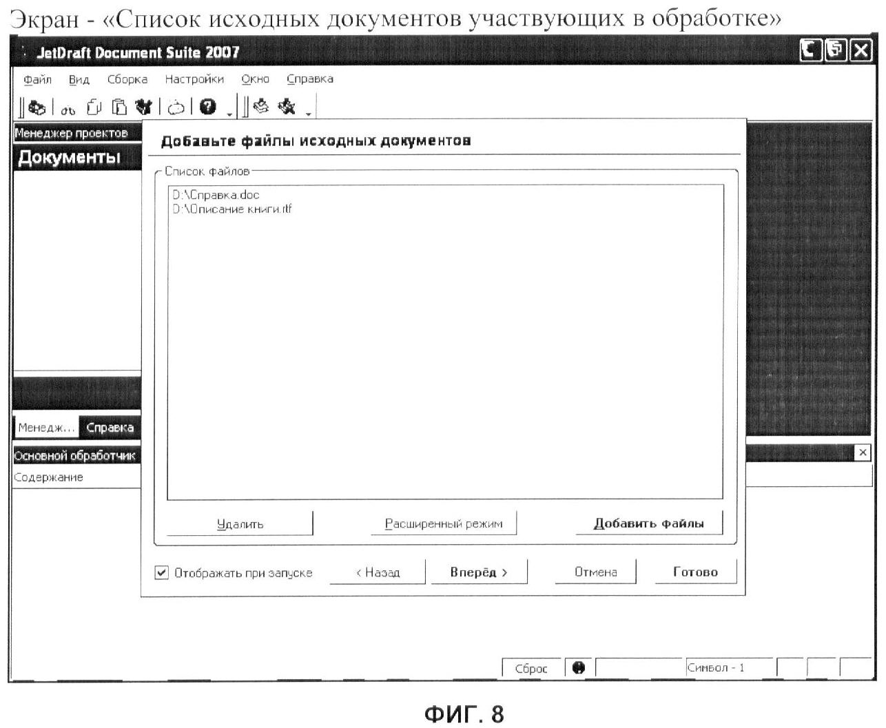 фиг.8 – вариант выполнения пользовательского интерфейса «Список исходных документов, участвующих в обработке»;