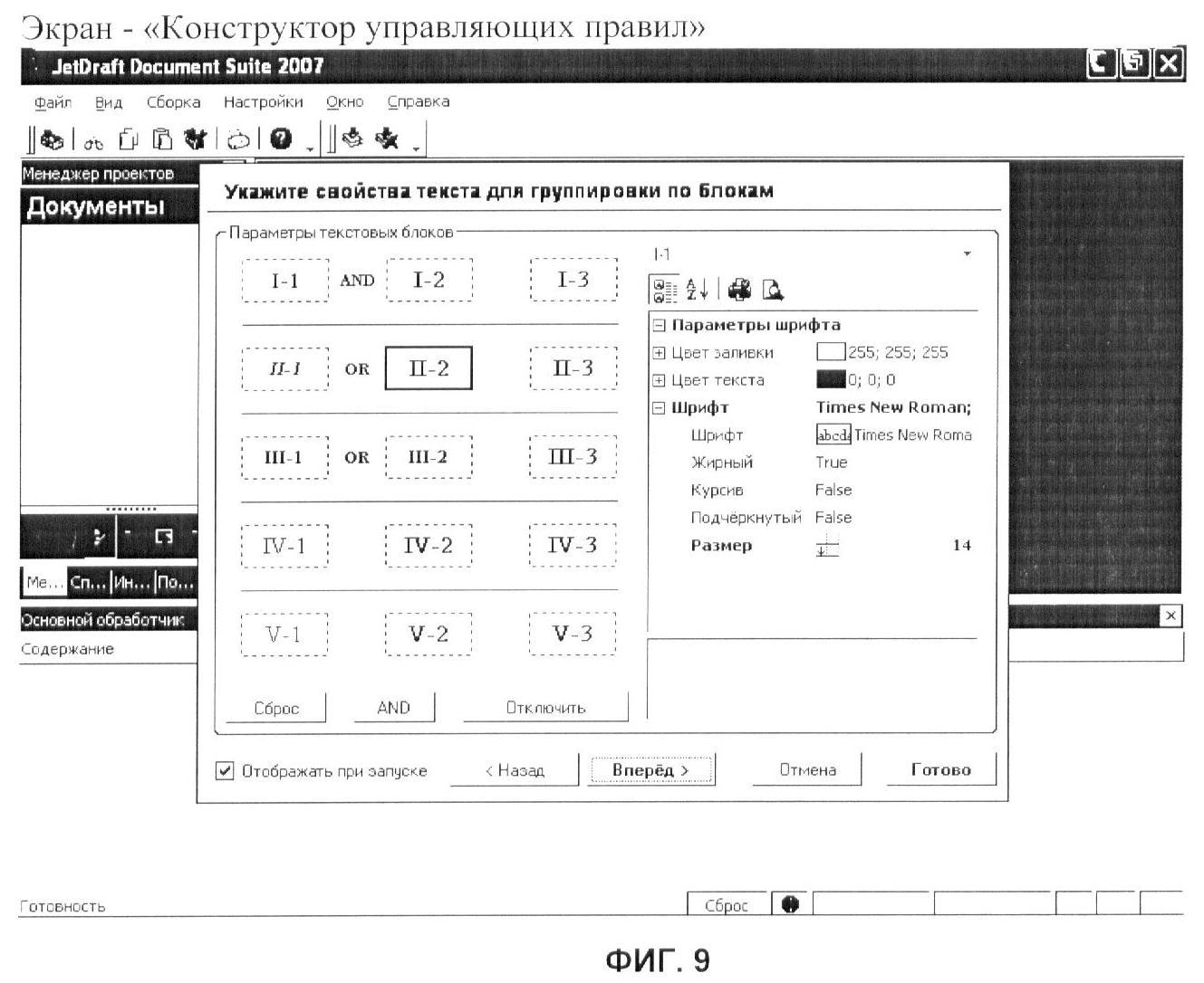 фиг.9 – вариант выполнения пользовательского интерфейса «Конструктор управляющих правил»;
